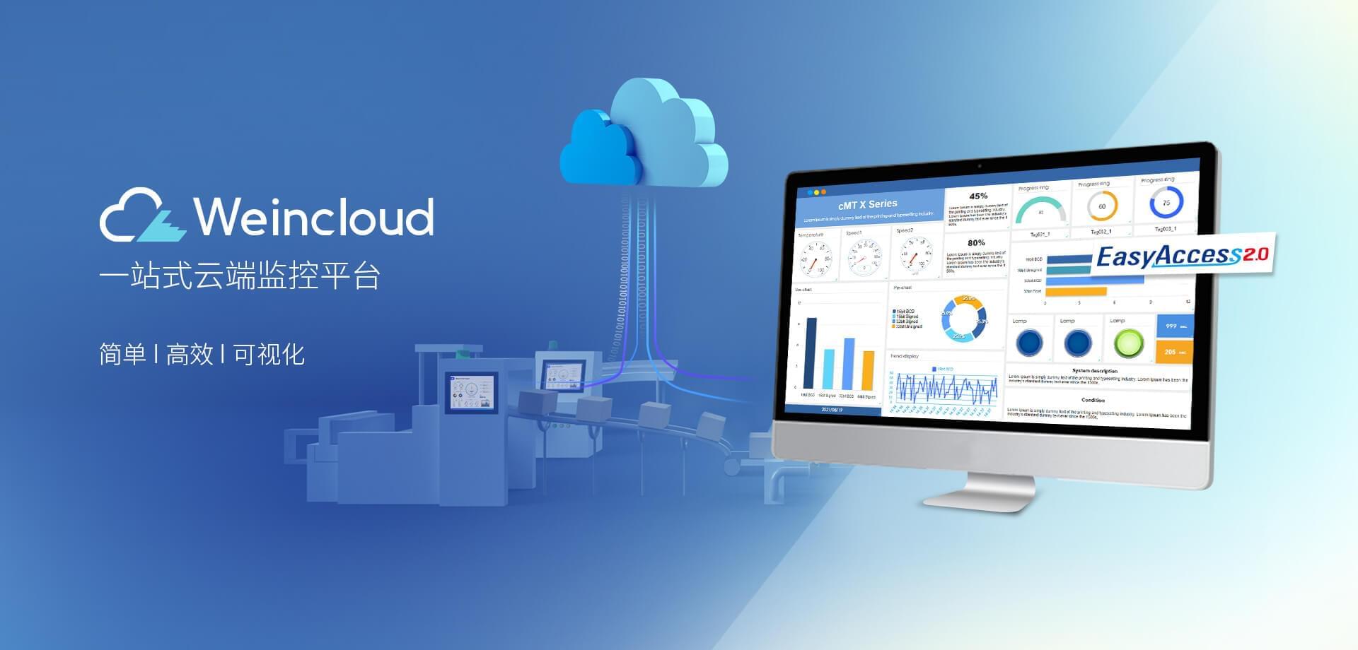 Weincloud 集結(jié)EasyAccess2.0遠(yuǎn)程監(jiān)控服務(wù)及Dashboard云端儀表服務(wù),將設(shè)備資料數(shù)據(jù)上云并以視覺(jué)化呈現(xiàn),協(xié)助管理者實(shí)時(shí)掌控現(xiàn)場(chǎng)產(chǎn)線(xiàn)狀態(tài)。